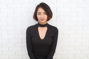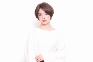 ウィービングカラーでメリハリのある落ち着いた大人っぽい感じの中に可愛いらしさをブレンドしたショートボブ